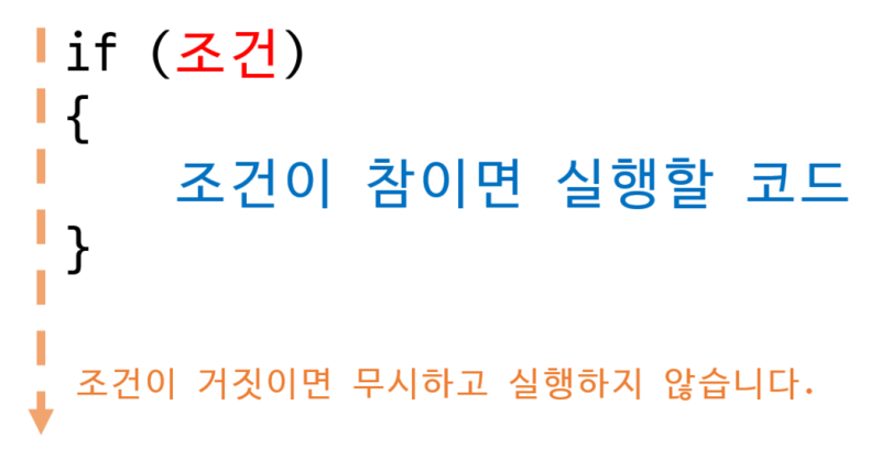 - 조건이 거짓이면 코드 블록은 실행되지 않습니다.