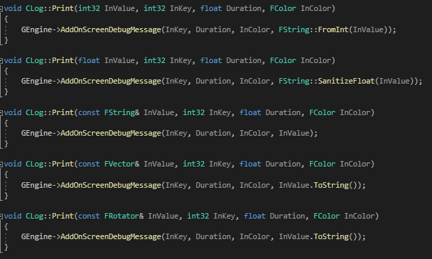 UE_LOG는 define으로 정의되어 있고 Screen은 함수로 구현되어 있다.