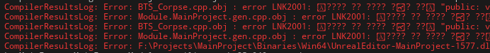 CompilerResultsLog: Error: BTS_Corpse.cpp.obj : error LNK2001: